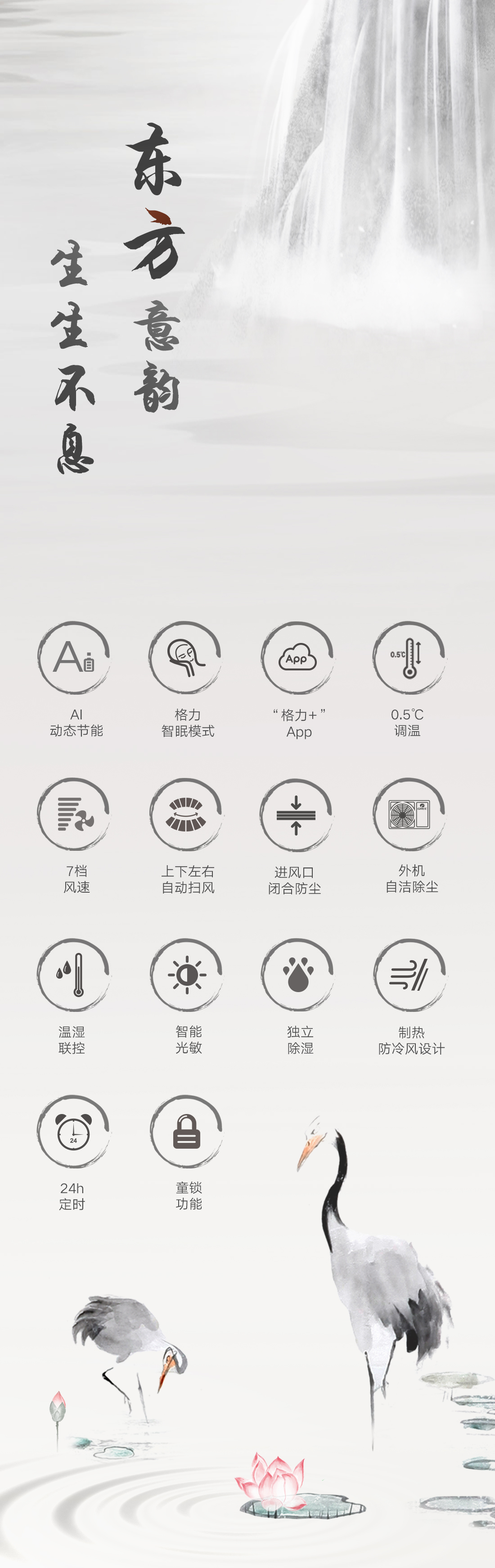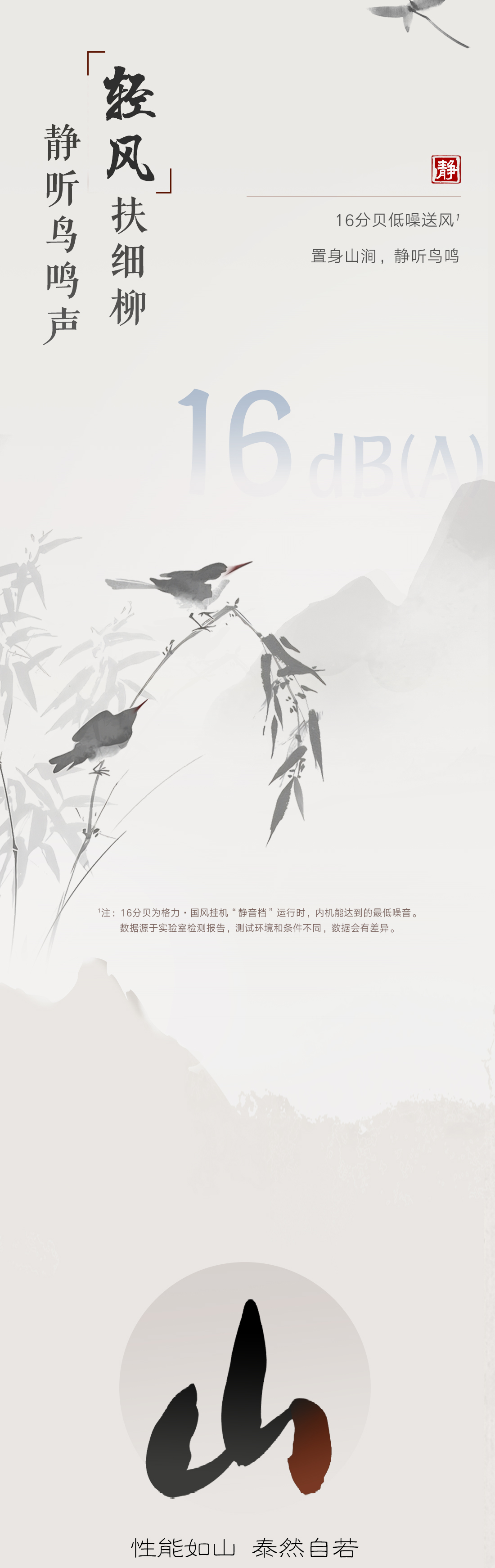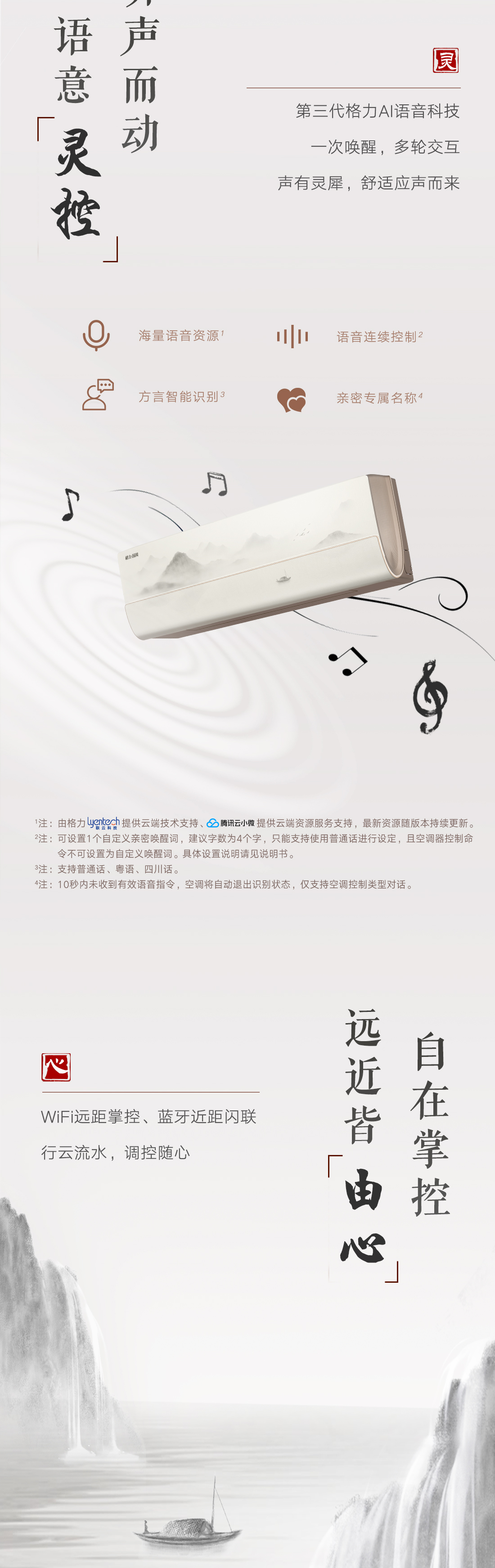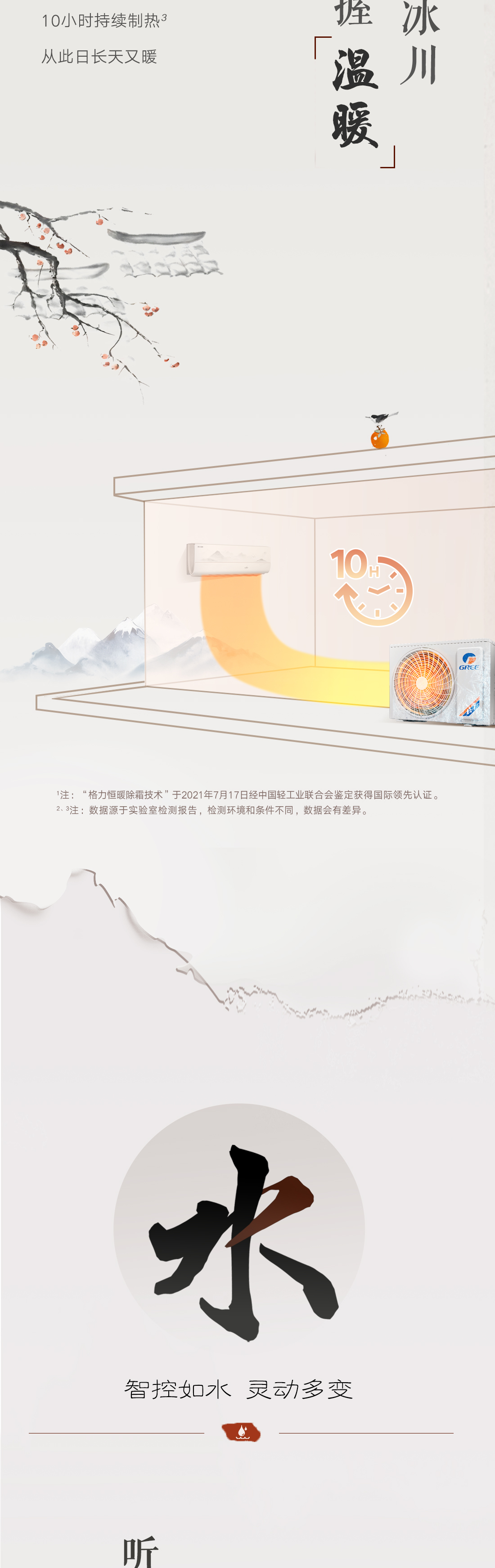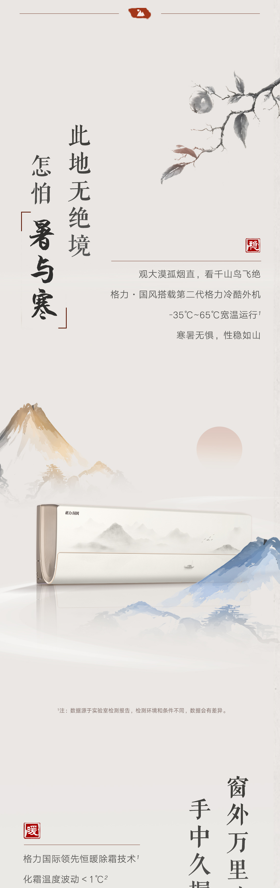 以國風山水入畫,打造新中式家裝的首選空調。畫軸中從畫中景,到人入景,再到心入境,層層遞進,將游人的情感逐層推向高潮,傳遞出“輕舟過山,人生亦然”的淡然、闊達的人生理念。